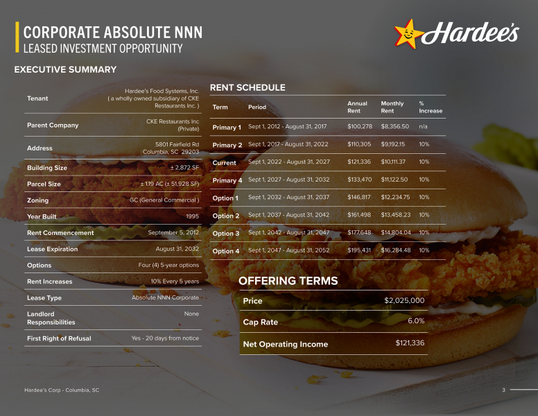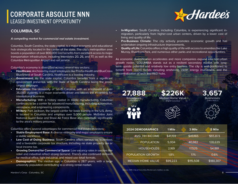 - Hardee’s is surrounded by several elementary, middle and high schools providing a solid and consistent customer base
